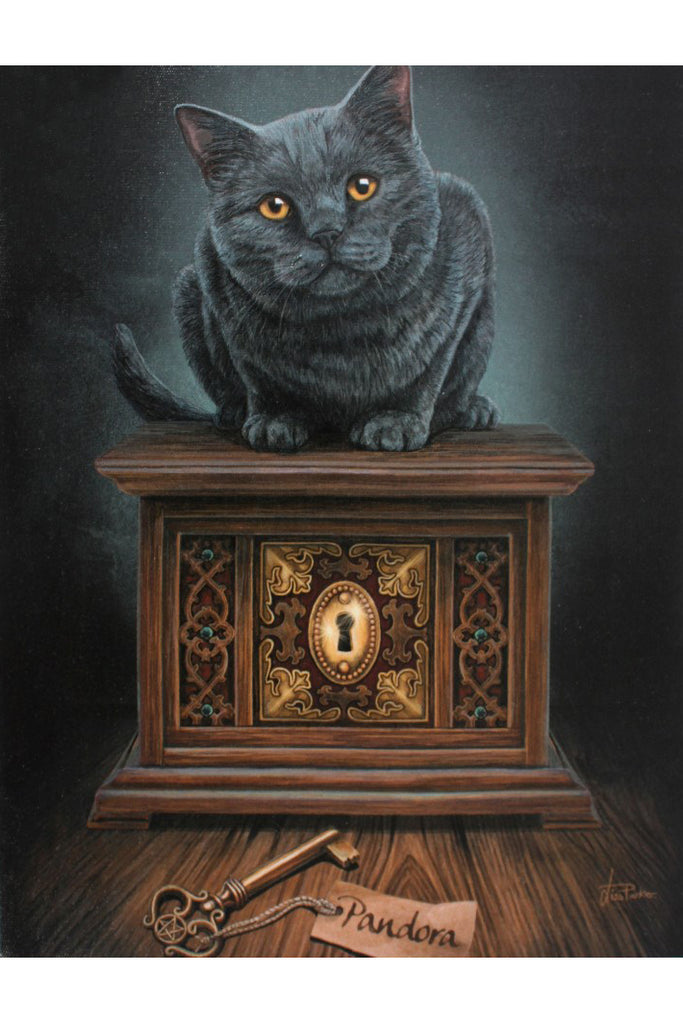 A stunning 'Pandora's Box' Canvas by Lisa Parker with cat on box design. Great gift for anyone who is a fan of Lisa Parker.
