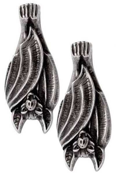 Embrace the allure of the night with our exquisite 'Before Dusk' roosting bat earring pair. These captivating gothic accessories are hand-crafted from fine English pewter, ensuring that each piece is not only unique but also a remarkable testament to artisanal quality.