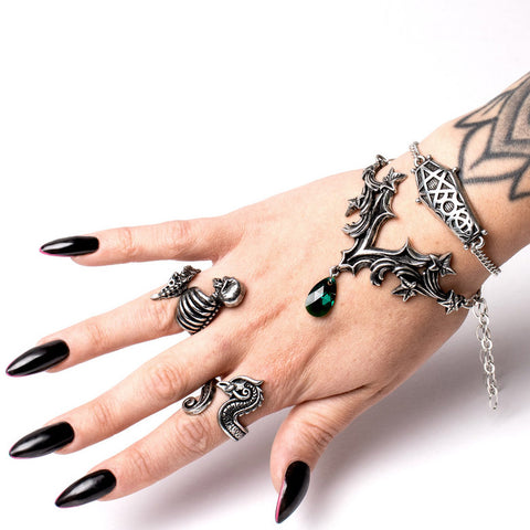 Dare to make a statement that resonates with your bold personality? Our captivating Skull Rib Cage and Vertebrae Wrap Ring in antique pewter is designed for those who embrace the edgy allure of alternative fashion. Crafted with meticulous attention to detail, this ring exudes an aura of rebellion.