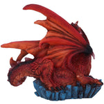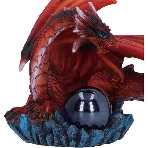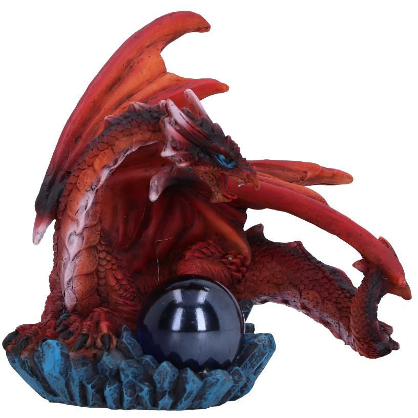Watch as this fearsome creature surveys the world from his new landing spot. Featuring bright-red scales with black accents on their claws, horns and wings, this mighty beast is fixated on the metallic orb in front of it. Eyes unblinking, this dragon will protect his treasured possession until the end! Cast in the finest resin before being expertly hand-painted, this is the ideal gift for any lover of mythical beasts!