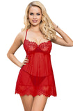 - Seductive red babydoll with elegant eyelet lace and ribbon bows