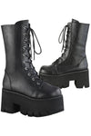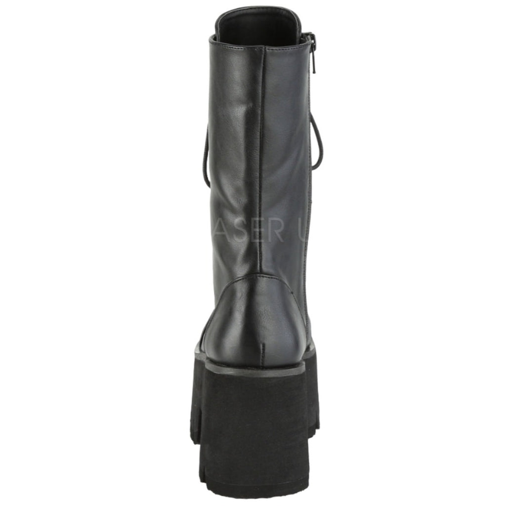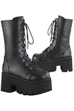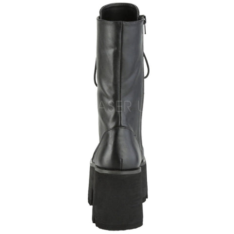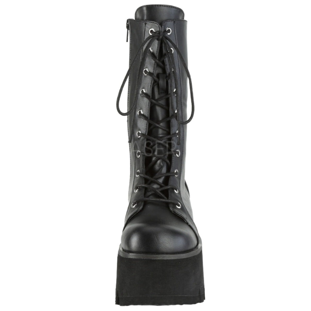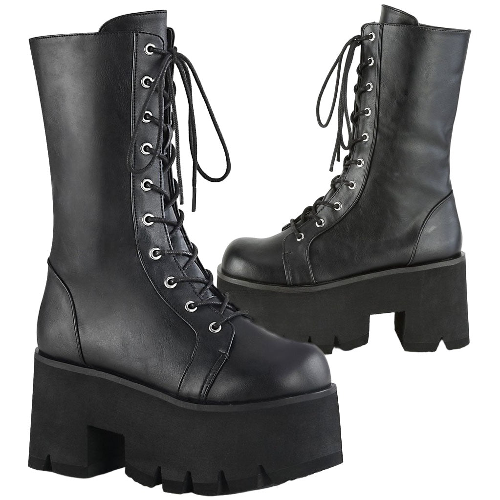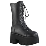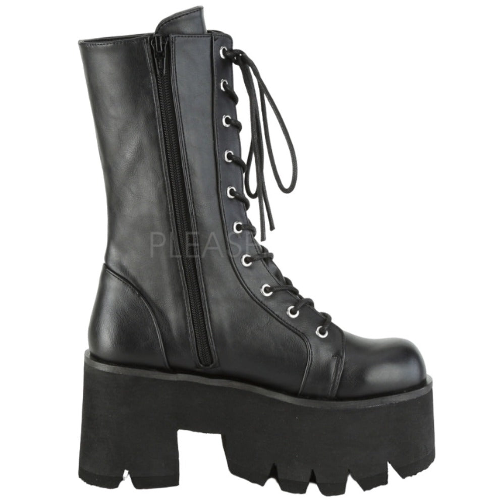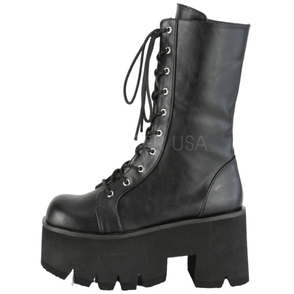 Demonia Platform Lace-Up Mid-Calf Boots ASHES-105. 3 1/2" (90mm) Chunky Heel, 2 1/4" Platform. Lace-Up. Mid-Calf Boot, Side Zip Closure.