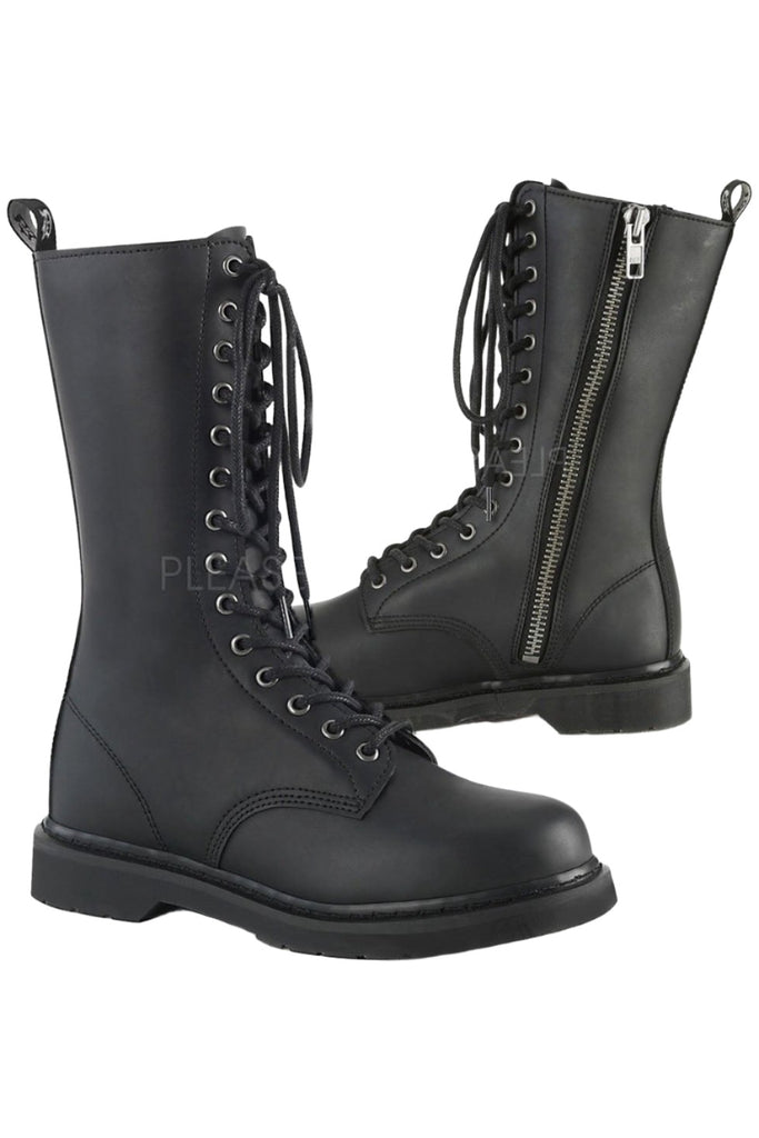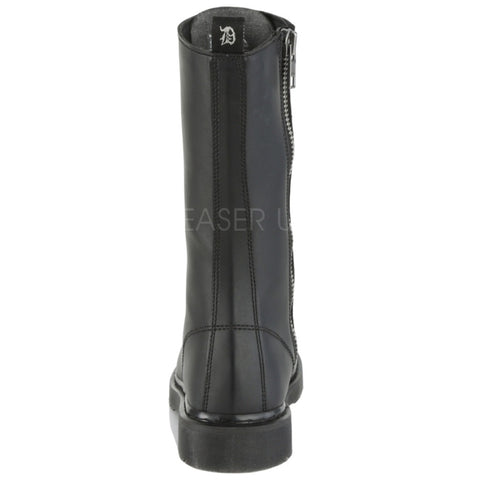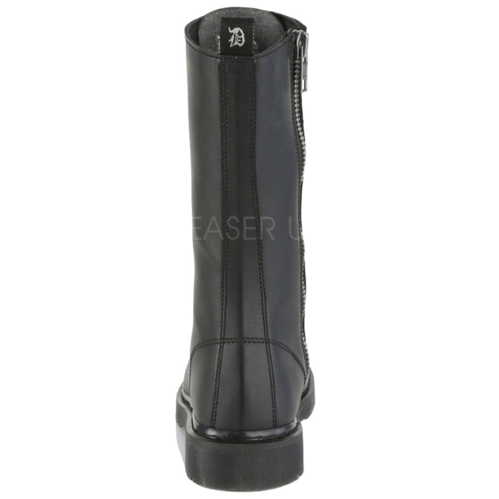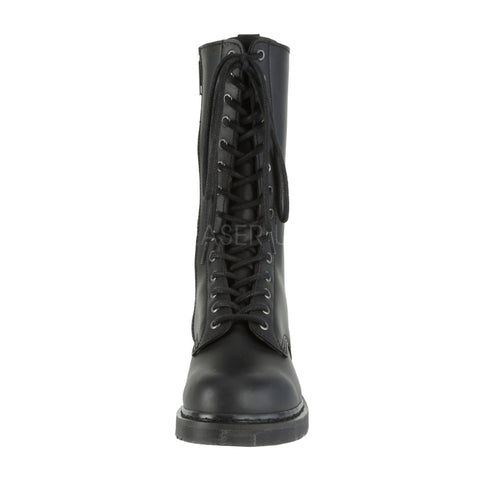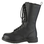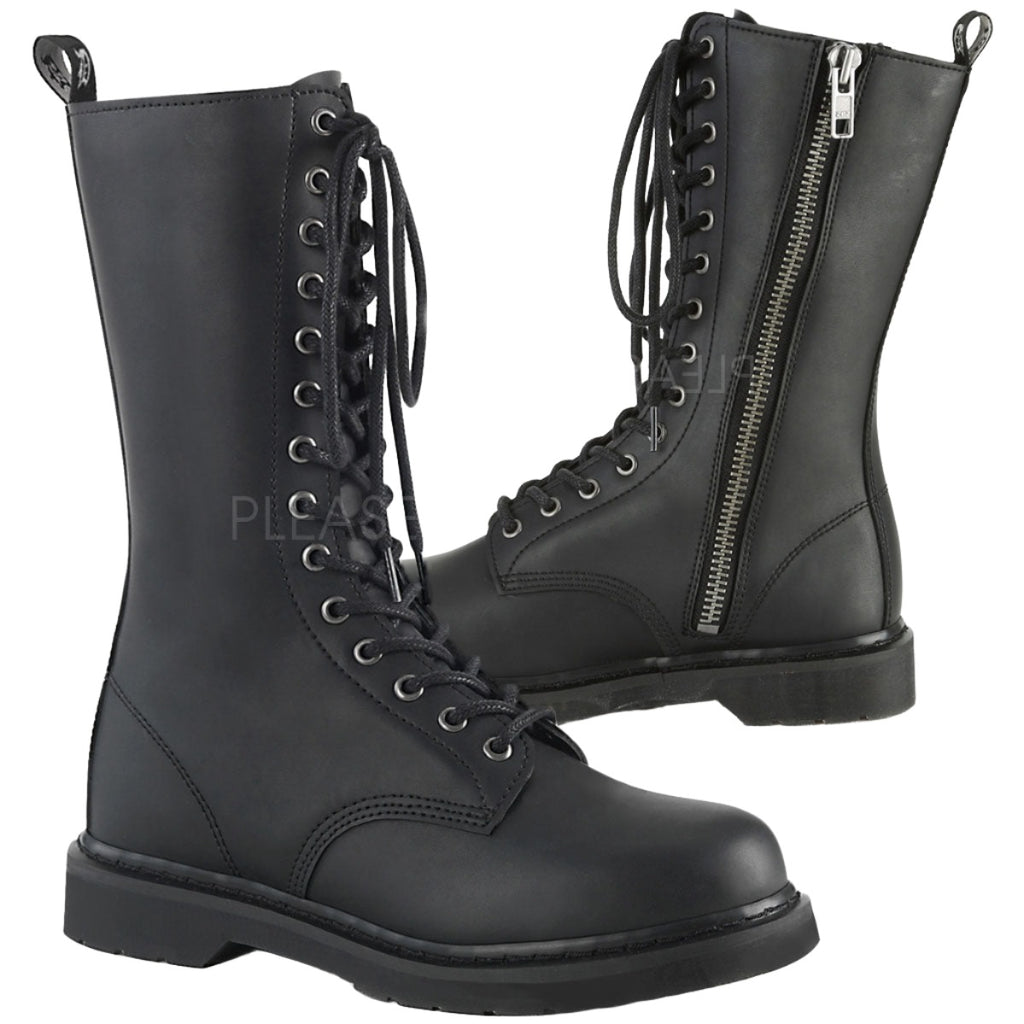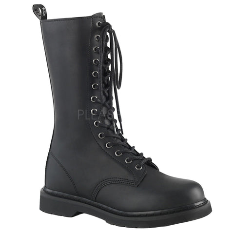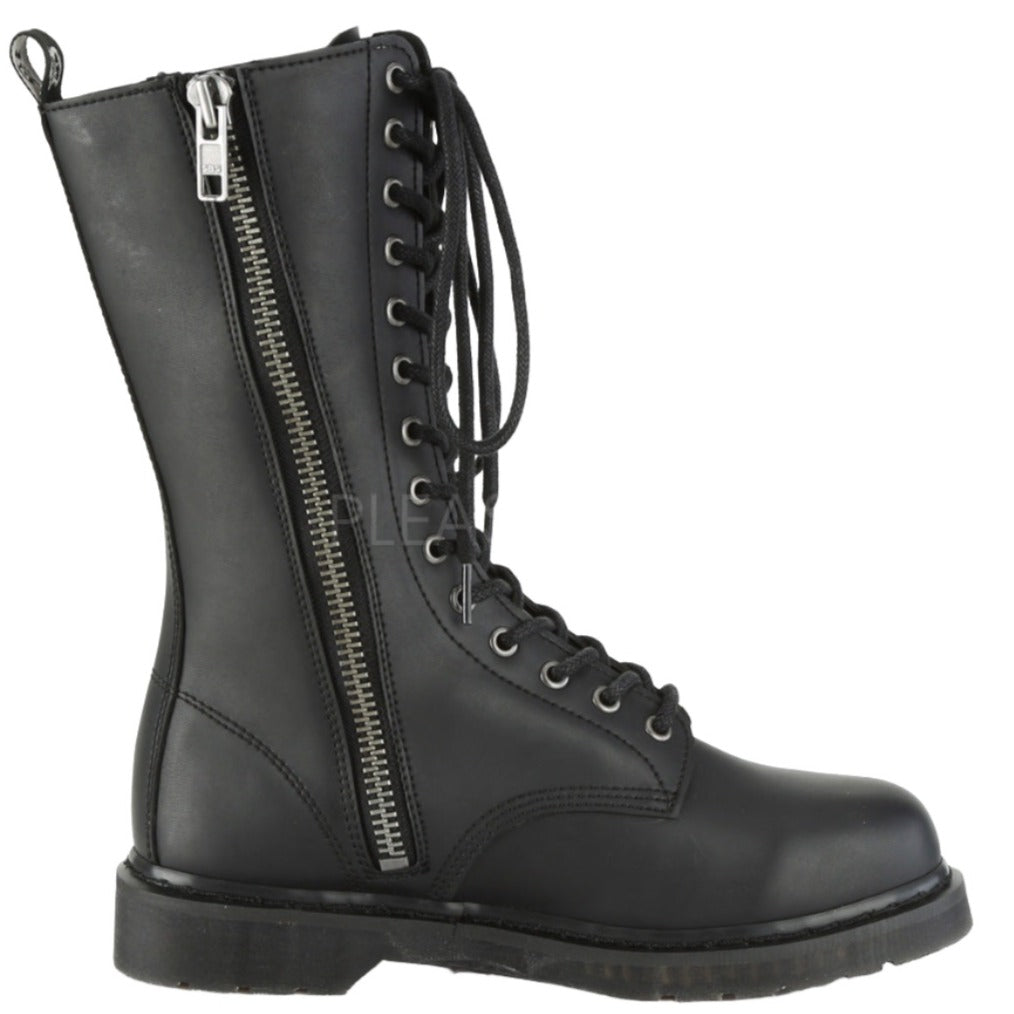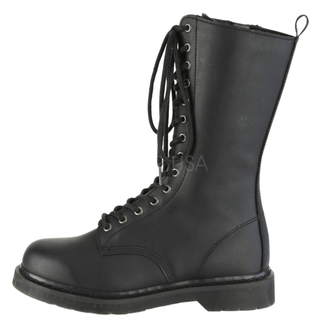 Keywords: DemoniaCult BOLT-300 Boots, Black Boots, Vegan Leather Boots, Mid Calf Boots, Combat Boots, Lace-Up Boots, Unisex Boots, Stacked Heel Boots, Comfortable Boots, Everyday Boots, Alternative Fashion Boots, Minimalist Boots