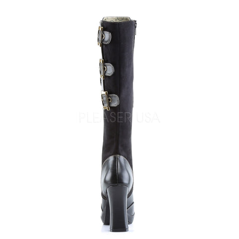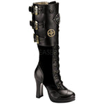 Keywords: DemoniaCult Crypto 302 Boots, Knee High Boots, Steampunk Boots, Platform Boots, Black Boots, Leather Boots, Suede Boots, Cosplay Boots, Costume Boots, Alternative Fashion Boots, Comfortable Boots, Cog Boots, Bee Boots, Buckle Boots, Zip Up Boots