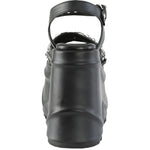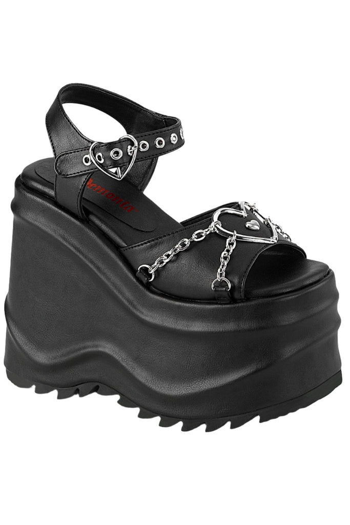6" (152mm) Wedge Platform Heart Buckle Ankle Strap Sandal with Heart and Chain Detail on Vamp.