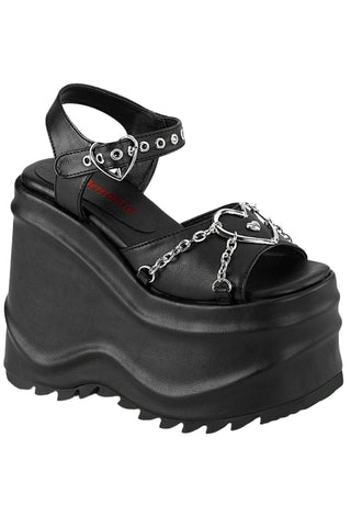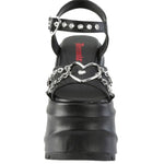 Embrace your inner rockstar with a touch of unexpected romance in the DemoniaCult WAVE-09 Black Vegan Leather Shoes! These statement sandals feature a bold platform design and a sweet surprise – a heart and chain detail on the vamp. Perfect for the fashionista who craves a touch of rebellion with a hint of playful charm.
