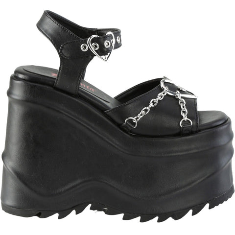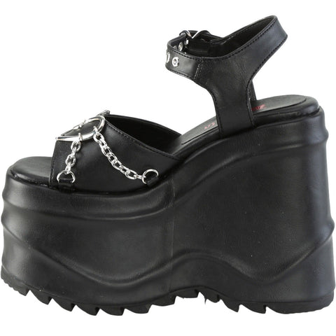 DemoniaCult WAVE-09 Black Vegan Leather Shoes: Sweet Rebellion with a Surprisingly Comfortable Edge (Platform Wedge Sandals)