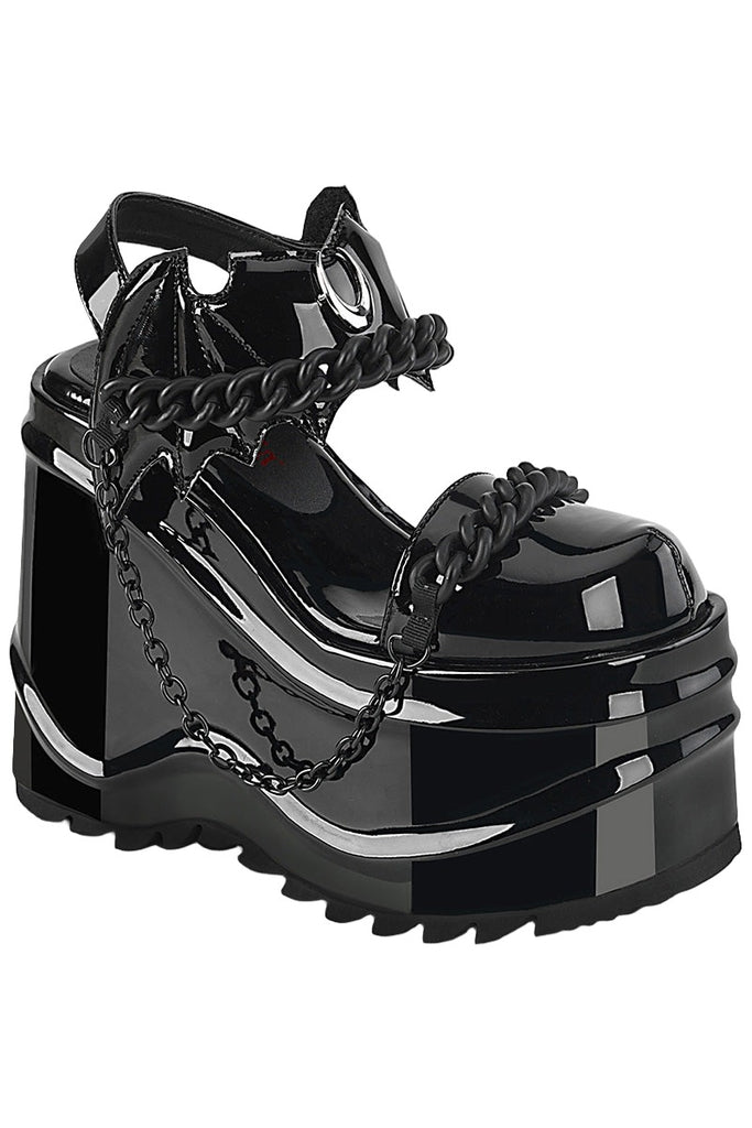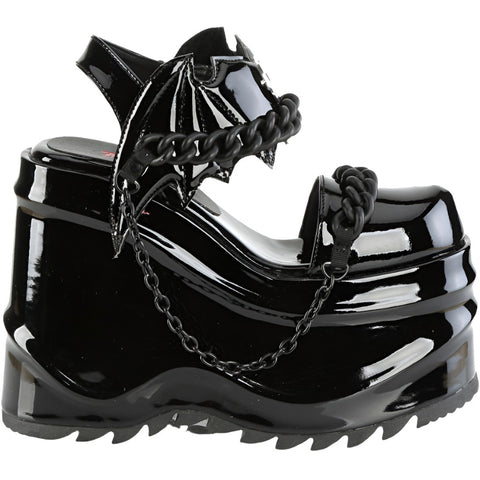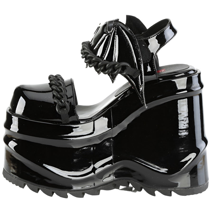 DemoniaCult WAVE-20 Patent Shoes: Spooky Shine with a Comfort Surprise (Platform Wedge Sandals)