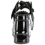 Embrace a touch of darkness with a gleaming twist in the DemoniaCult WAVE-20 Patent Shoes! These statement sandals feature a classic silhouette with a high-shine patent finish, a comfortable 6-inch wedge platform, and a touch of gothic whimsy, perfect for the fashionista who craves a standout look.