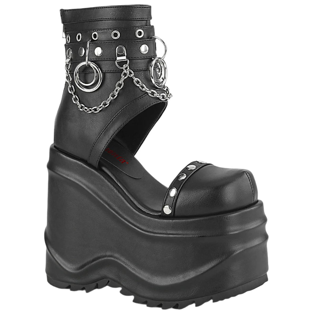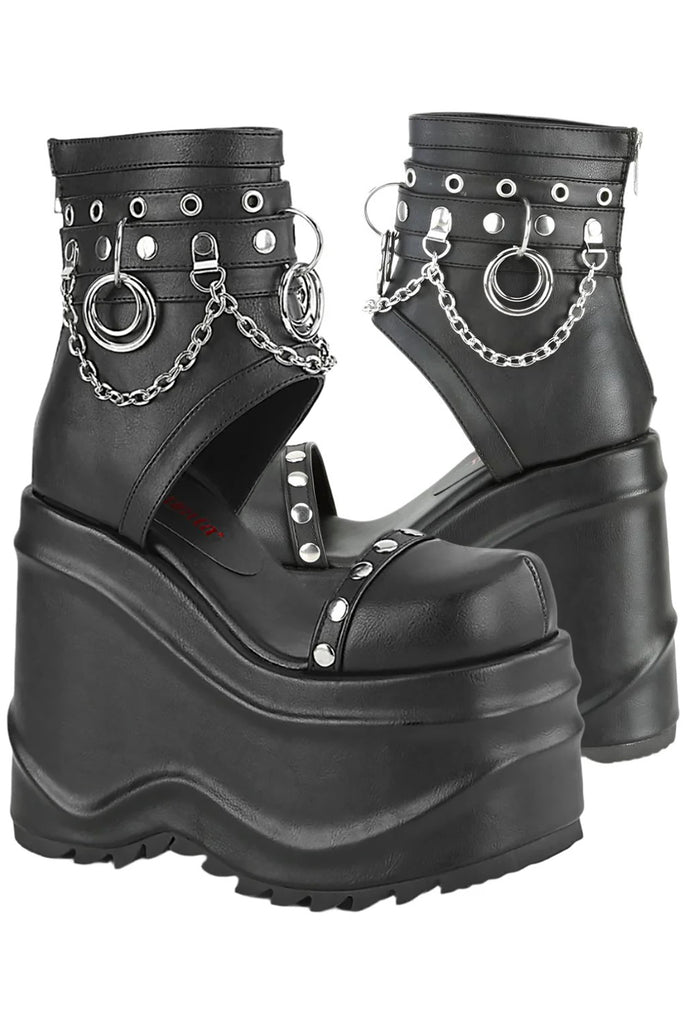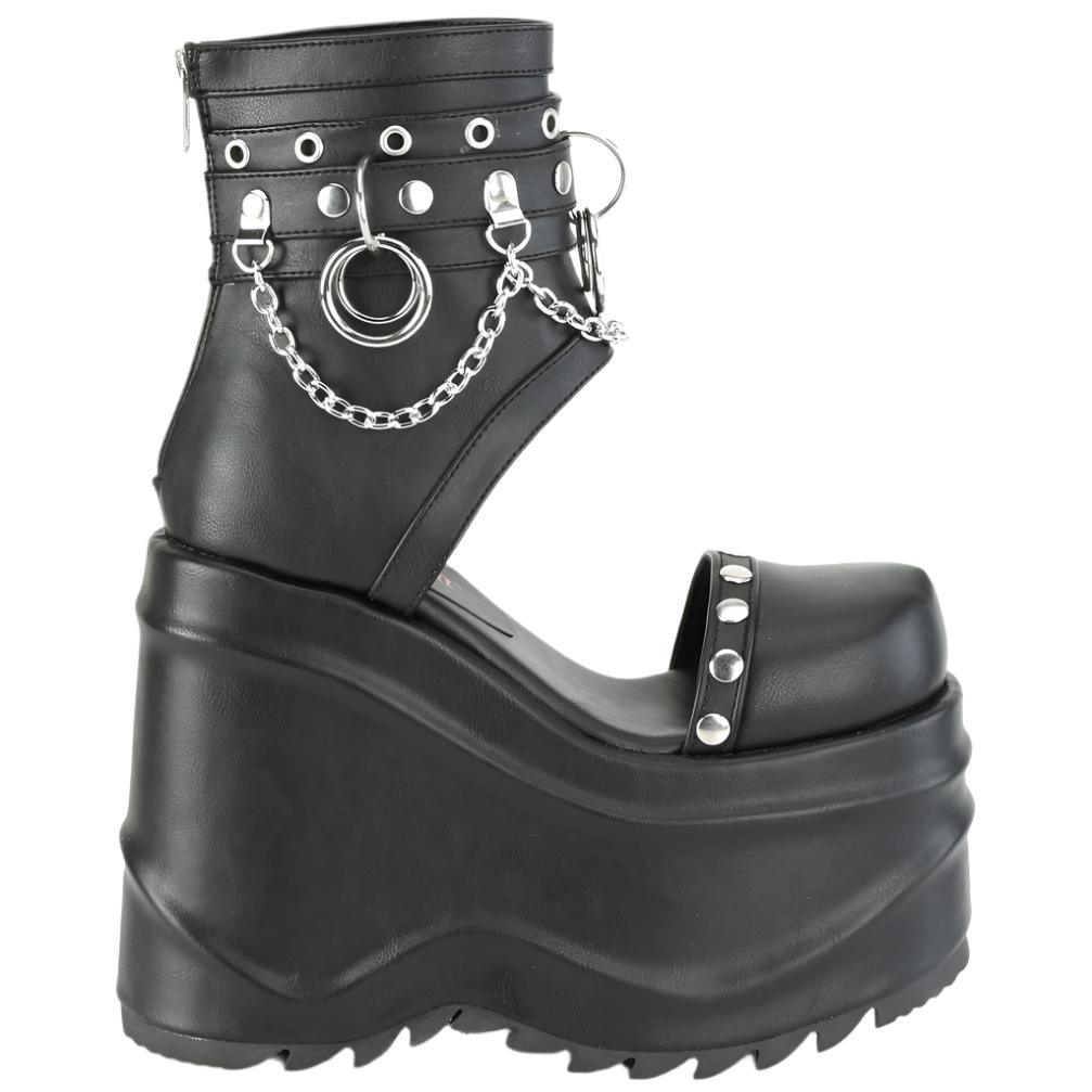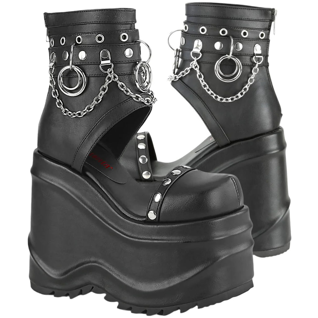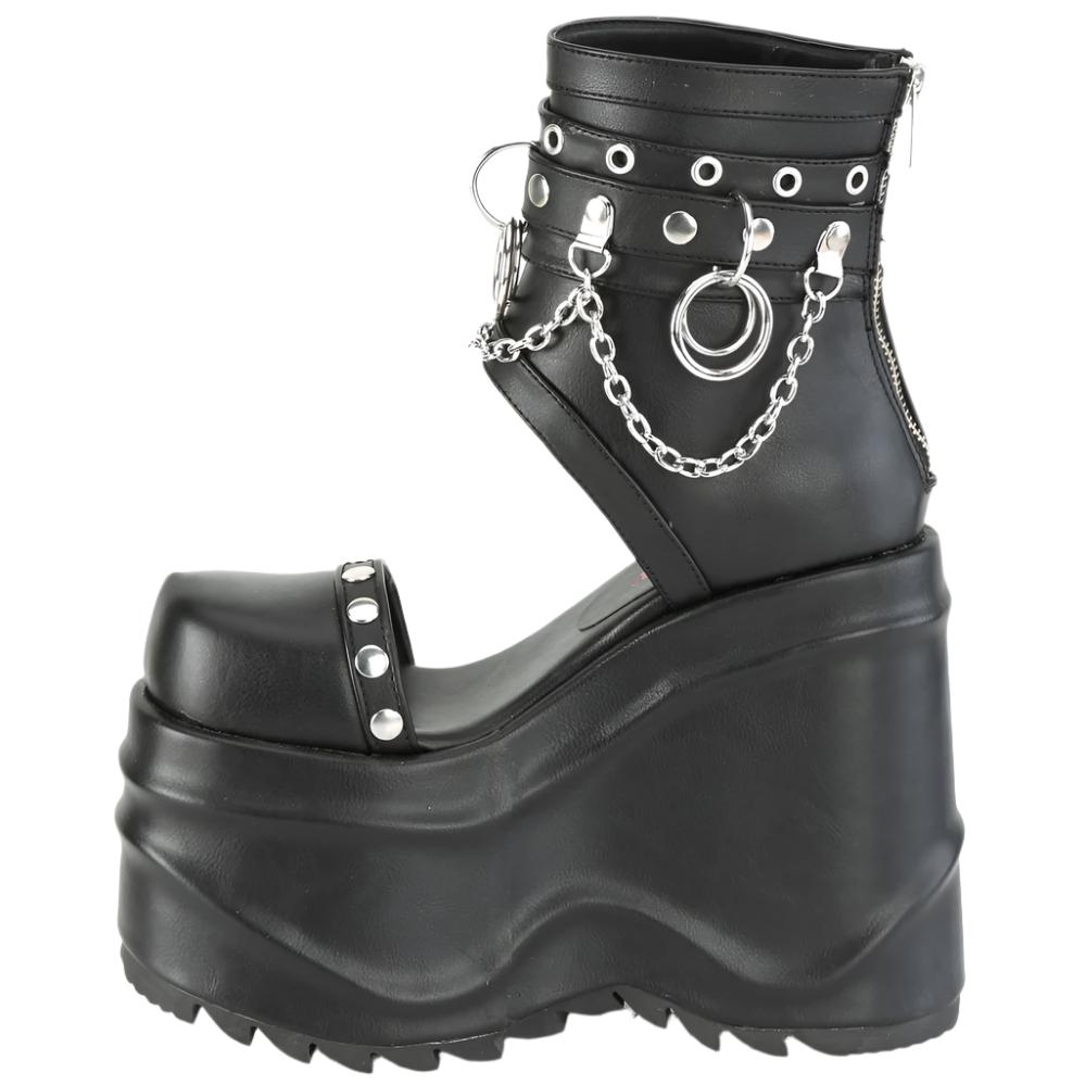 DemoniaCult WAVE-22 Black Vegan Leather Boots: Bold & Edgy with Platform Power (Platform Booties)
