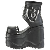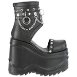 6" (152mm) Wedge Platform Ankle Cutout Bootie Sandal Featuring Studding, D-Rings, Multi-Sized O-Rings and Hanging Chain Detail, Back Metal Zip Closure.