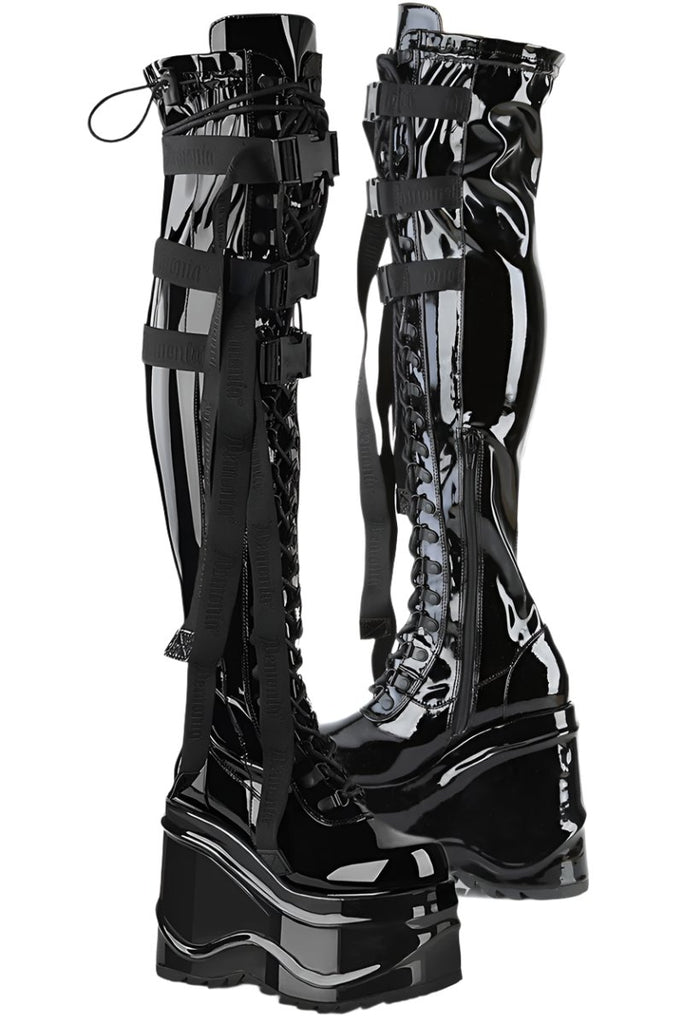 DemoniaCult WAVE-315 Black Stretch Patent Boots.