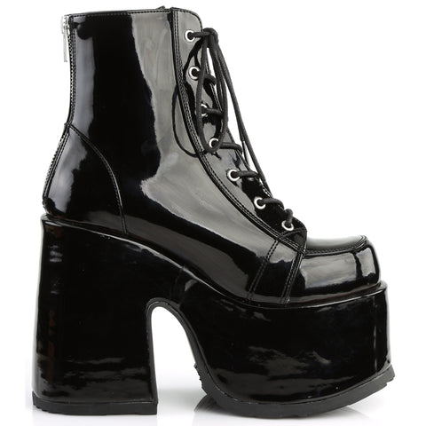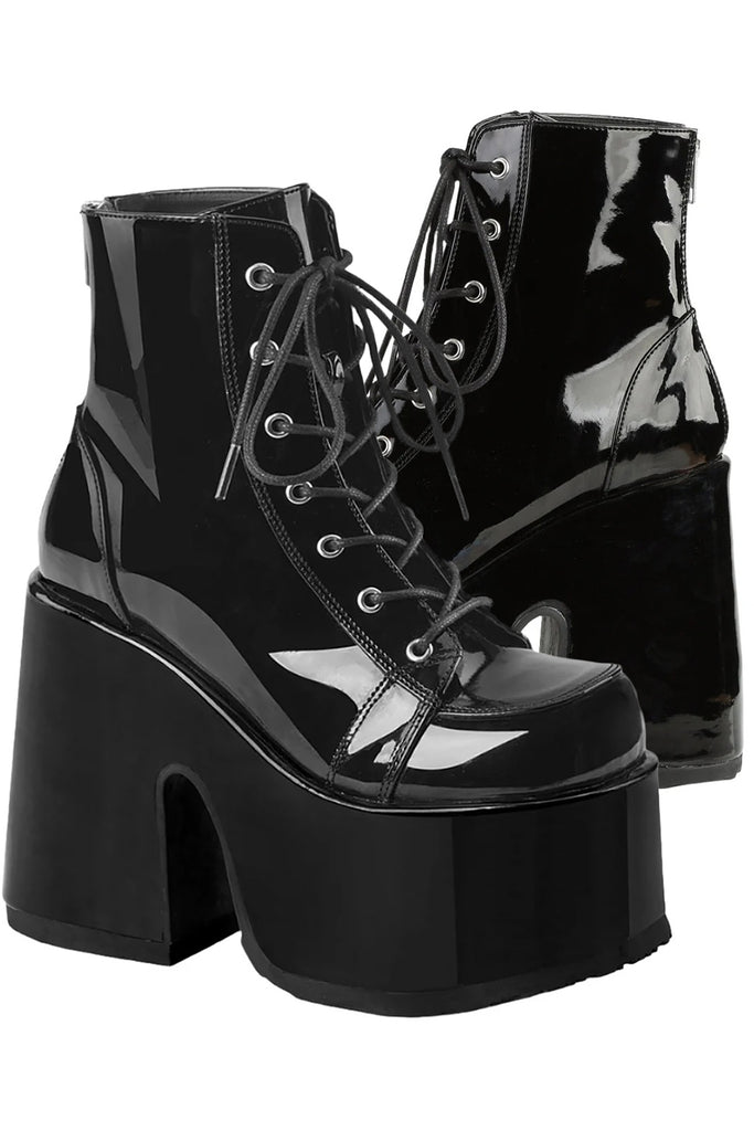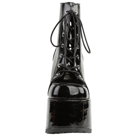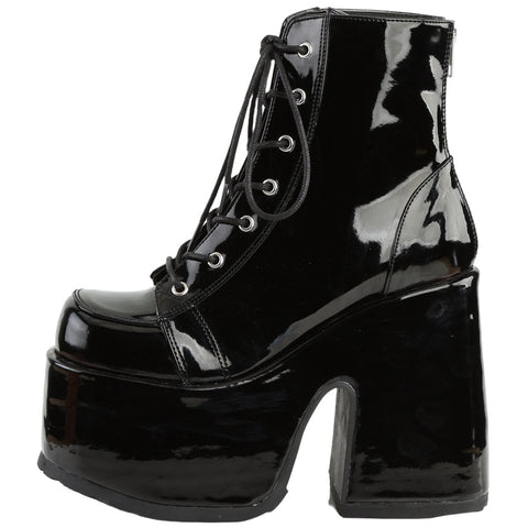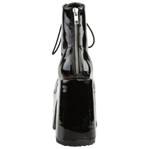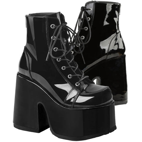 5" (127mm) Chunky Heel, 3" (75mm) Platform Lace-Up Ankle Boot, Metal Back Zip Closure.