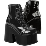 Inject instant attitude into your everyday look with the DemoniaCult Camel-203 Platform Ankle Boots. These bold boots boast a chunky heel, platform sole, and rebellious details, making them a perfect choice for those who love to push boundaries.