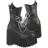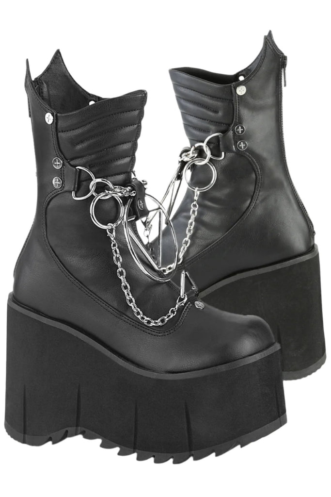 The DemoniaCult KERA-130 Black Vegan Leather Boots are more than just footwear; they're a statement piece that empowers you to embrace your individuality and conquer the world with confidence and style. Order yours today and turn every step into a powerful strut!