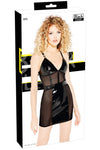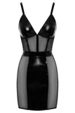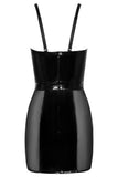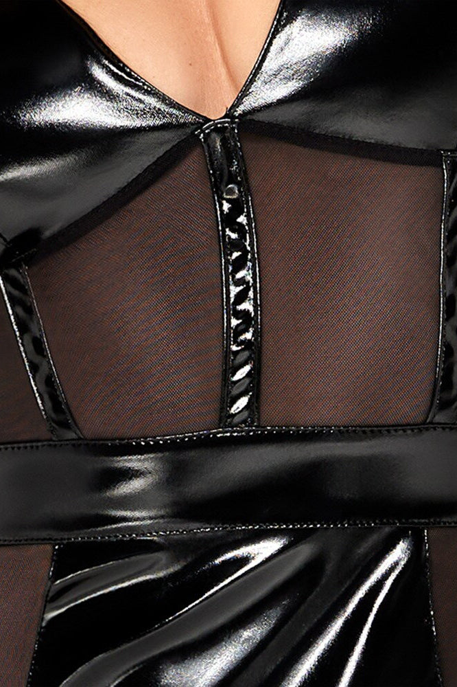 • Unique Material Mix: The dress is crafted from high-shine black vinyl (100% polyester with a polyurethane coating), with transparent, elastic powernet inserts at the front and sides. The powernet (95% polyamide, 5% spandex) creates alluring cut-outs while offering a comfortable, stretchy fit.