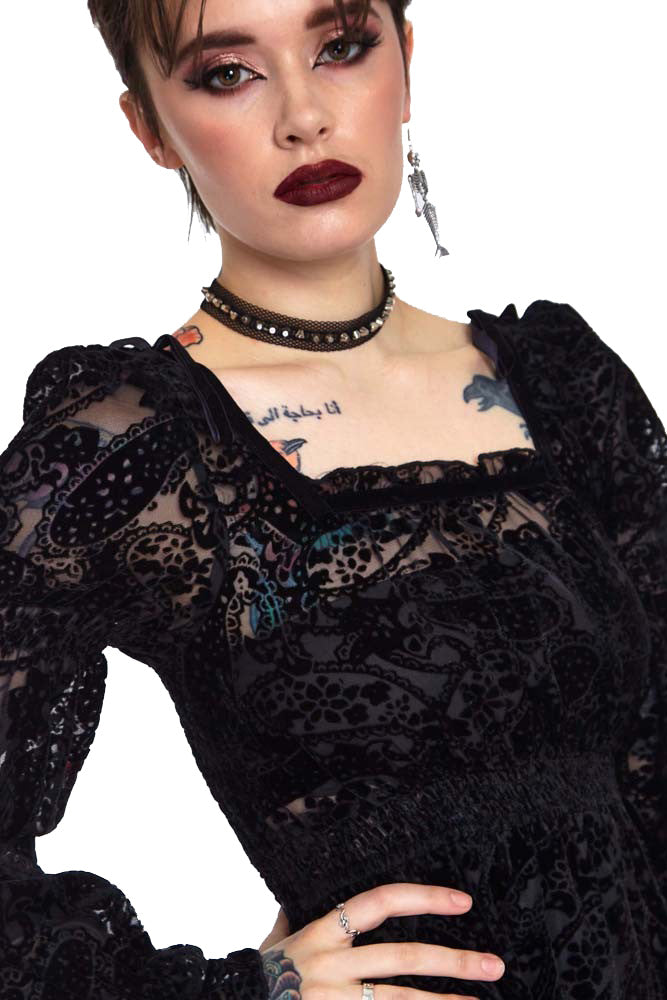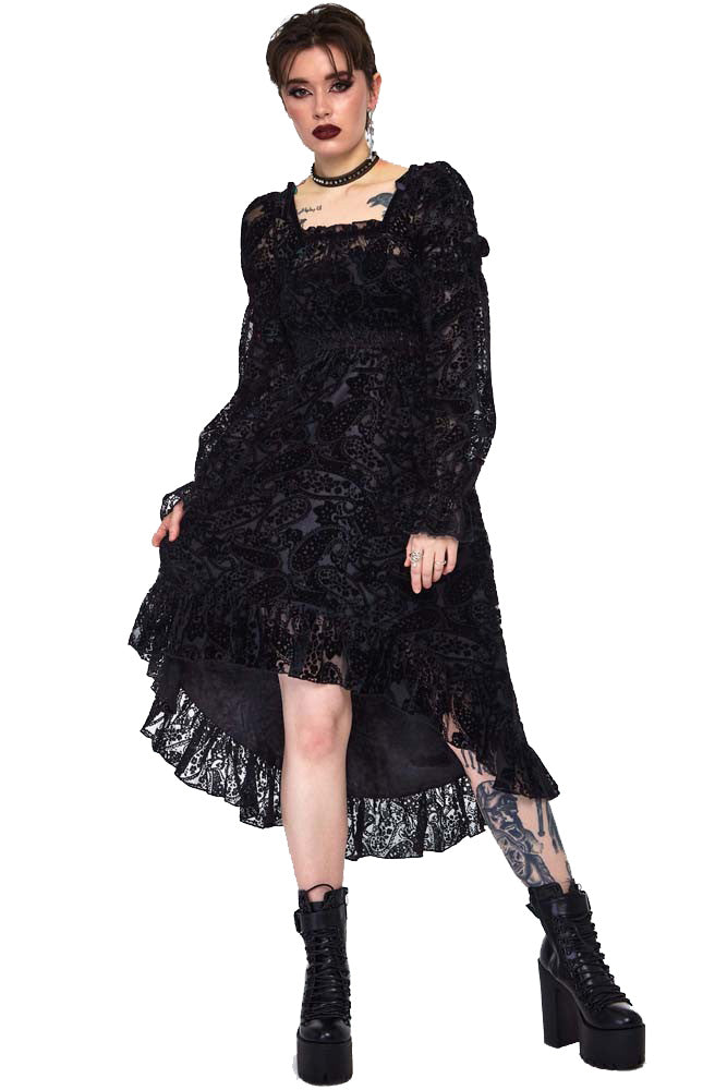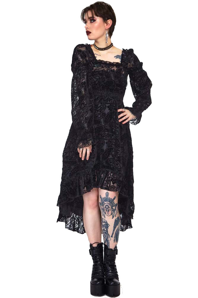 Embrace Darkness and Grace with the Jawbreaker Paisley Burnout Dress (Gothic Elegance Awaits)