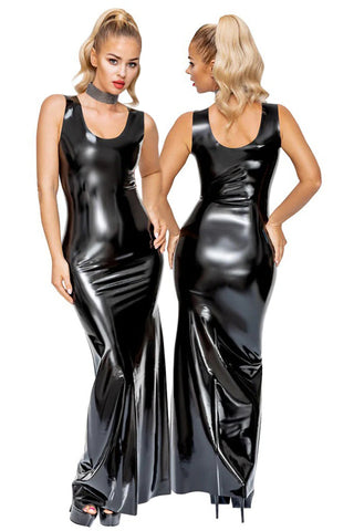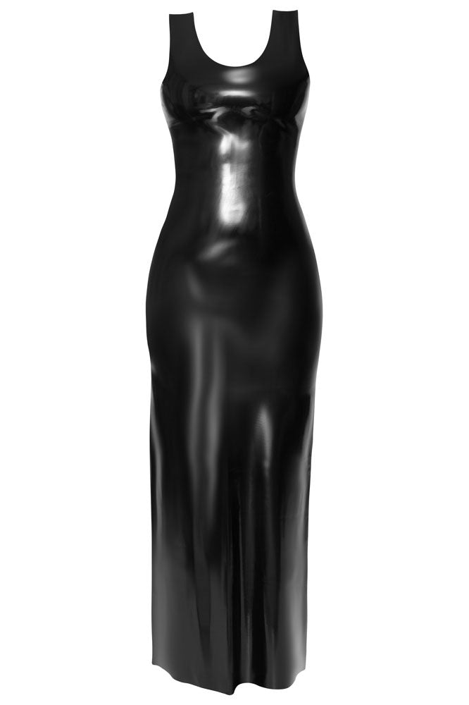Timeless Silhouette: This stunning dress boasts a classic maxi length and a waisted design that flatters all body types. It’s an evening dress for every rubber fashionista.