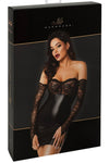 • Designed to hug the body while maintaining a comfortable fit, the mini dress highlights the waist and hips, combining the allure of lace with the daring structure of the Power Wetlook material. The gloves add a unique, playful twist to the overall look.