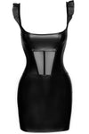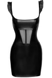 Noir Handmade, powerwetlook dress, tulle inserts, short dress, mini dress, women's dress, designer dress, luxury fashion, evening wear, party wear, clubwear, bold outfit, confident style, seductive look, body positive fashion, high-quality clothing, wetlook fashion, tulle, velvet straps