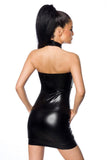 Feel fierce and fabulous in this head-turning mini dress. The deep neckline, adorned with edgy eyelets, adds a touch of daring sophistication, while the wetlook finish creates a mesmerizing, high-shine effect. The dress's figure-hugging silhouette accentuates your curves in all the right places, while the mini length showcases your legs with confidence.