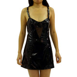 Sexy PVC and Fishnet Dress with Shoulder Straps and Choker.