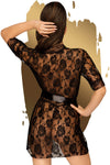 With this kimono you wrap yourself in delicate lace that hugs your curves and feels particularly pleasant on the skin. Thanks to the semi-transparent design and the deep V-neck, the kimono allows your lovers hot glances. The elegant look is emphasized by the tie belt in satin look, with which the robe can be closed at the front. The set also includes a string that matches the kimono and completes the outfit.