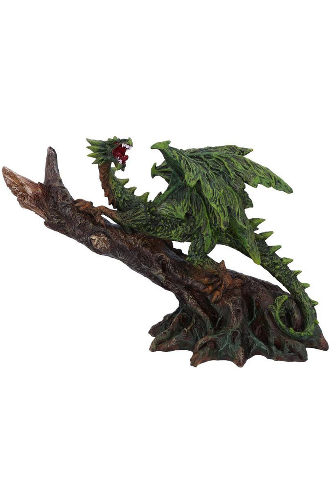 Forest Freedom rests on his large tree trunk perch. Deep Green in colour, this dragon has dark brown lowlights on his underbelly and clawed feet. He is at one with the forest and can easily camouflage in any dense woodland areas. Cast in the finest resin before being hand-painted, this monstrous piece will look perfect in any dragon enthusiasts collection.
