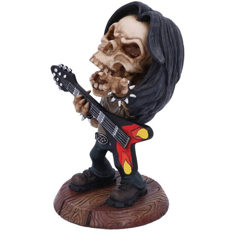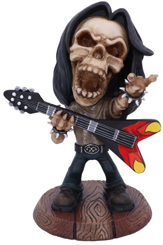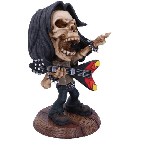 Designed by James Ryman, international Gothic and Fantasy artist, this Pocket Rocker has been carefully crafted for the heavy metal rockers. His electrifying sounds will consume your senses and take you to another realm of rock music mastery. Dressed in leather and denim, metal spiked bracelets and hair as black as the night, his fiery air guitar and screaming mouth will be sure to send shivers down your spine. Effortlessly sculpted and cast in the finest resin before being expertly hand-painted, this is the ultimate addition to any heavy metal rock enthusiast.