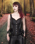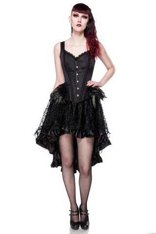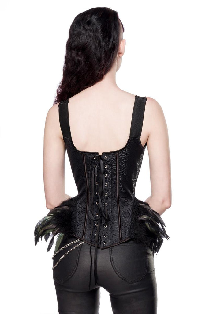 With its attached feathers, lace trimmings, and a modesty panel for added comfort, this corset is designed to make you feel confident and alluring. Whether layered over a blouse or worn as a statement piece, it's sure to turn heads.