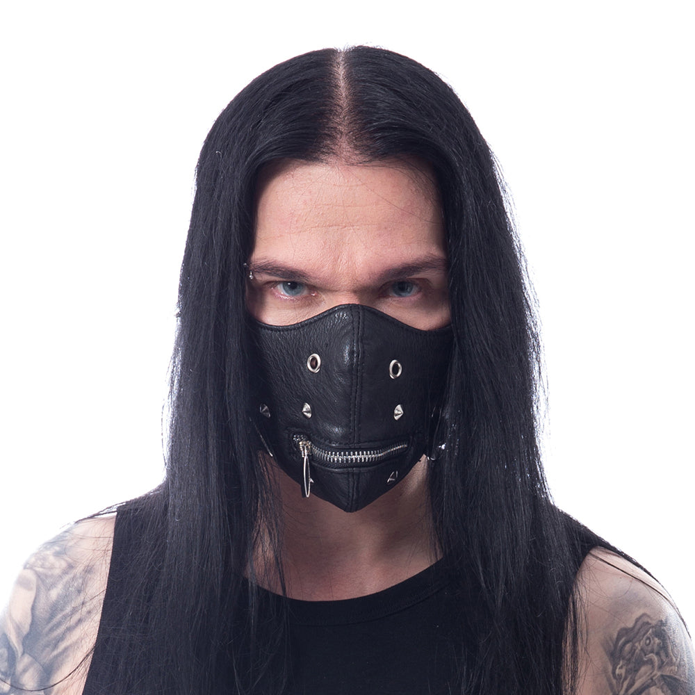 Soft Faux black Leather Face Mask with Silver Metal Detailing.