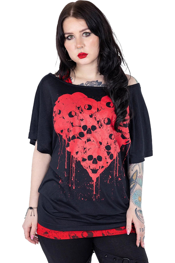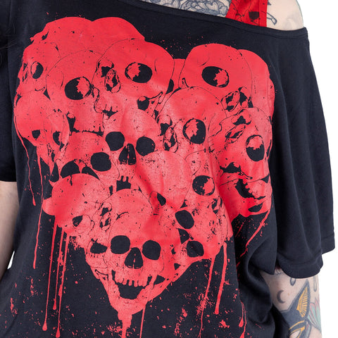 Indulge your dark side and experience the ultimate in edgy fashion. Order your Heartless Skull Heart Top today!