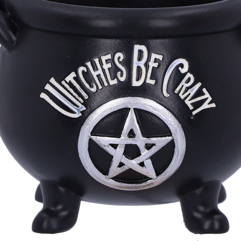 Featuring a silver pentagram and the words 'Witches be crazy' in the centre of the cauldron. Cast in the finest resin before being expertly hand-painted.