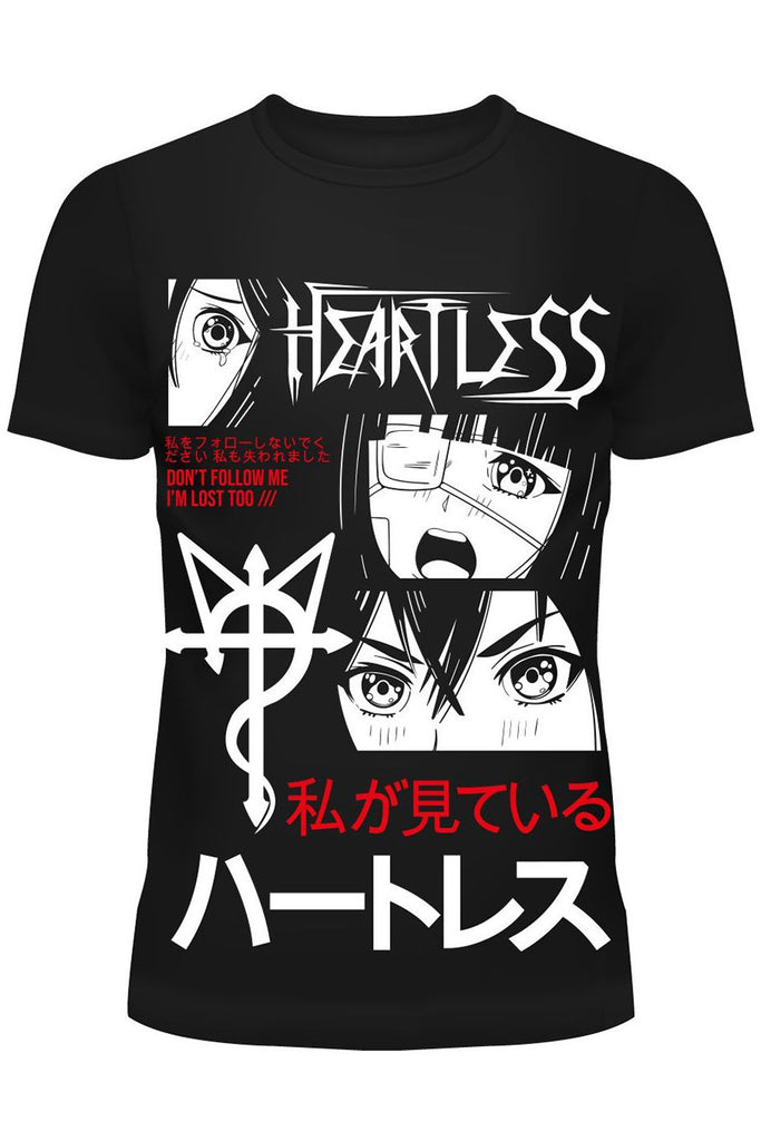 Keywords: Heartless I'm Lost T-shirt, black t-shirt, fitted t-shirt, women's t-shirt, Japanese design t-shirt, edgy t-shirt, mysterious t-shirt, fashion t-shirt, casual wear, versatile t-shirt.