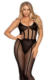 This set features a sheer mesh bodysuit that drapes elegantly over your curves. The opaque lining in strategic areas provides a touch of mystery while ensuring you feel comfortable and confident. The matching skirt adds a touch of playfulness, and the stretchy material allows for a comfortable, one-size-fits-most design.
