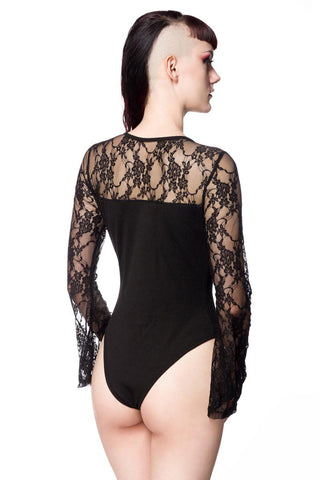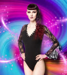 Keywords: gothic body, lace body, V-neck body, long sleeve body, jersey body, bodystocking, women's body, gothic fashion, alternative fashion, steampunk, Victorian, elegant, stylish, Ocultica