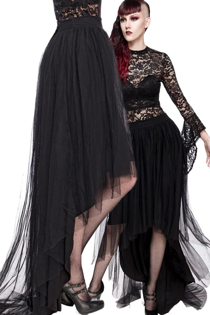The asymmetrical design adds a touch of modern edge to the classic tulle silhouette, making it a standout piece for any occasion. Whether you're attending a gothic-inspired event or simply elevating your everyday style, this skirt is the perfect choice.