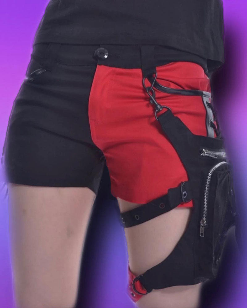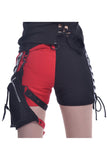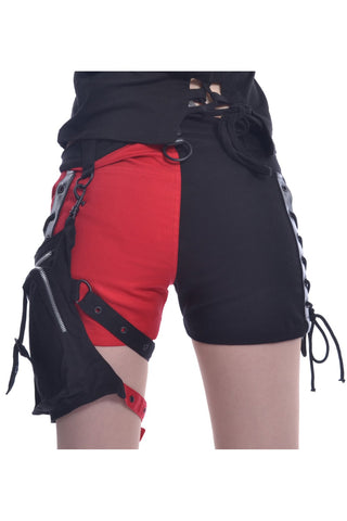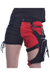 Poizen Industries Heartless Stina Shorts - Ladies Two Tone Black and Red Shorts in Stretch Cotton with Detachable Pocket.
