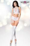 Unleash Your Inner Starlet. The Saresia Silver Gogo Set is a dazzling ensemble designed to make you the center of attention. This glamorous set combines a perfect blend of sophistication and sensuality, crafted for the woman who demands to be noticed.