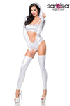 Step into the spotlight with the Saresia Wetlook Silver Body Set. Order yours today and experience the ultimate in futuristic fashion.