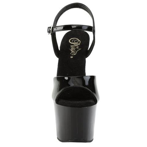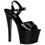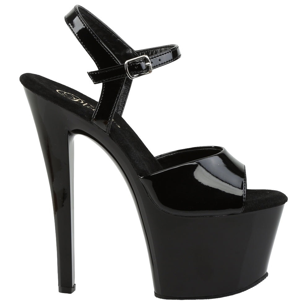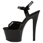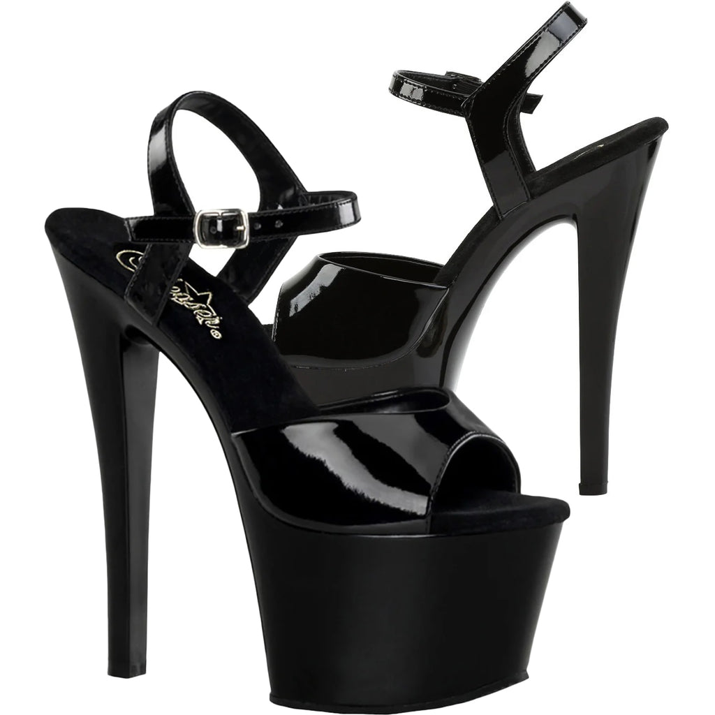 Embrace the future of footwear with the Pleaser SKY-309. These black patent PVC sandals are a daring departure from the ordinary, a testament to your unique style and insatiable appetite for the extraordinary.
