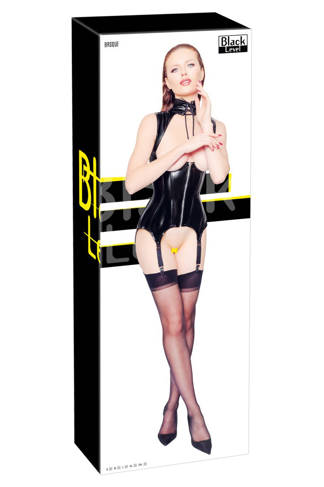 Unleash your inner siren with the Black Level Vinyl Open Cup Basque, a captivating statement piece designed to flatter, support, and empower you. This basque is the perfect combination of sultry design and practical comfort.