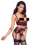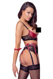 Made from a soft, stretchy blend of 85% polyester and 15% spandex with lace details of 90% polyamide and 10% spandex, this set provides a flexible and comfortable fit. (Please note, stockings are not included).