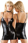 Make a bold statement with the Cottelli Party Mini Dress, a piece designed with "sharp optics" and a sleek, close-fitting silhouette. This dress is crafted from shiny wet-look material that will turn heads wherever you go.