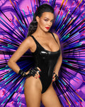 PVC body with high-cut bottom hem line. Quintessential kink-wear.