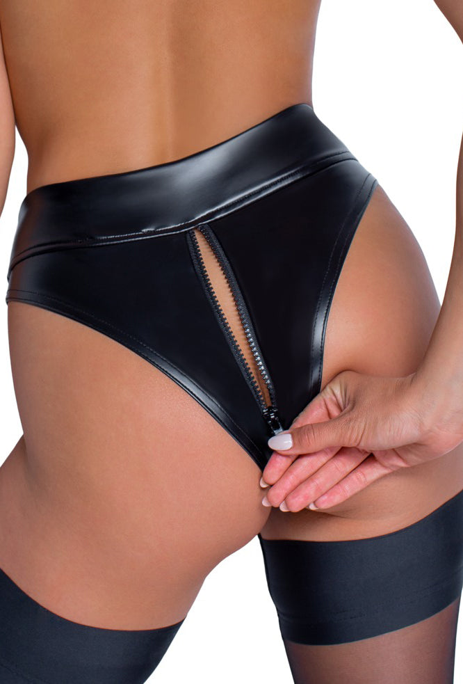 Experience the perfect blend of style and confidence with this extraordinary piece. The powerwetlook fabric hugs your curves flawlessly, while the unique zip design adds a touch of edgy allure. Whether you're layering or creating a bold statement, these briefs are a must-have for the modern individual.