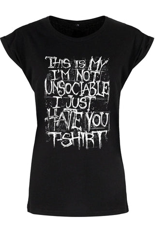 Unleash your inner truth and let your t-shirt do the talking. Order your I'm Not Unsociable Ladies Premium Black T-Shirt today and embrace your individuality with confidence.