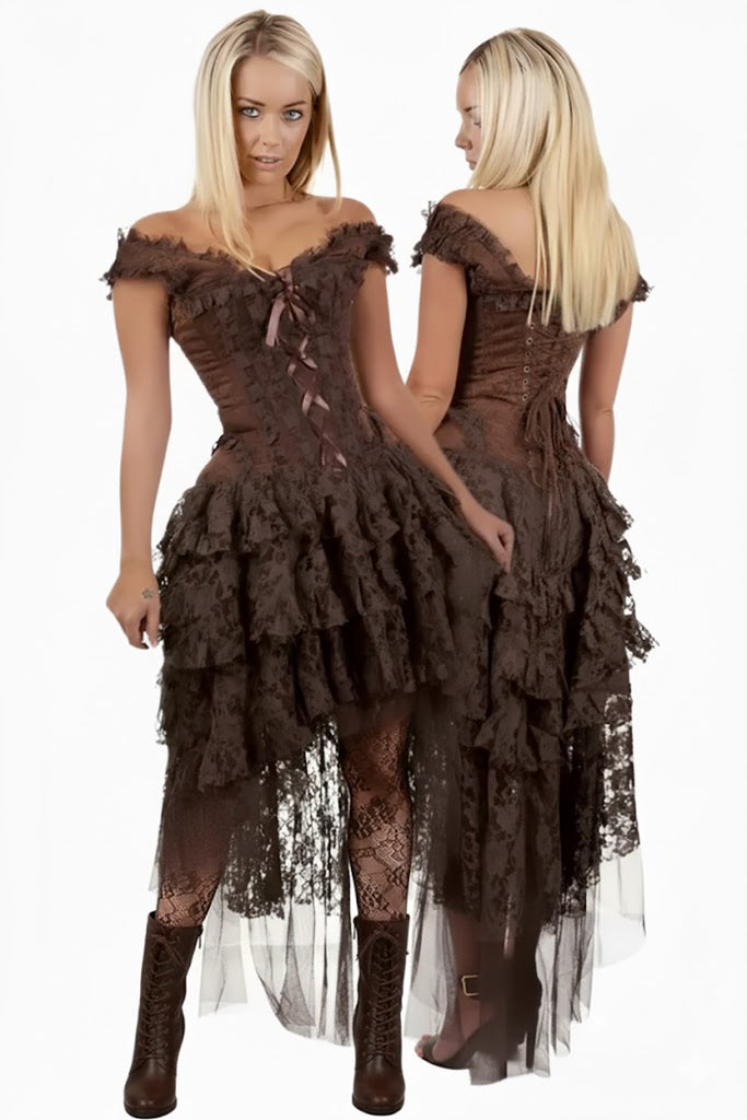 - Cascading Lace Drama: The cascading brown or black lace skirt section adds a touch of drama and mystery to the dress. The flowing lace creates a beautiful waterfall effect that flatters your figure and adds a touch of whimsical charm. (Choose between classic brown lace or a touch of bold black to best suit your style!)