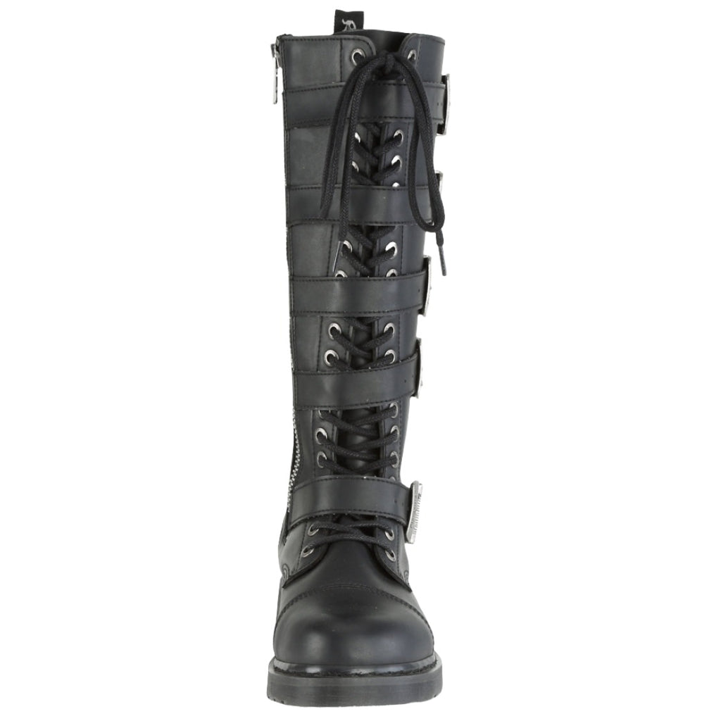 Take your everyday look to the battlefield of style with the DemoniaCult BOLT-425. This unisex knee-high combat boot combines classic military vibes with a touch of modern edge, making it a versatile choice for anyone who wants to make a statement. Crafted from cruelty-free vegan leather, the BOLT-425 offers a comfortable and stylish alternative to traditional combat boots.