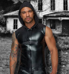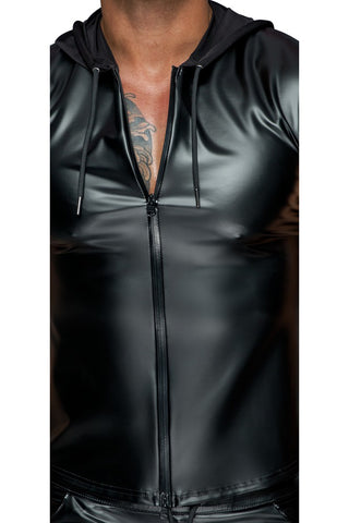 Stylish hoodie! Short, sleeveless shirt from Noir in a black powerwetlook. Soft and elastic all around for a close fit and high wearing comfort. Stylish with a hood made of soft jersey with a drawstring. Full-length 2-way zip at the front.